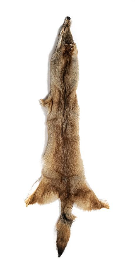 Professionally tanned, display quality, garment grade Western Coyote. These heavily furred, tanned Coyote pelts are case skinned and have very soft, supple and stretchy leather making them excellent for use as wall hangers or for garment manufacturing. These coyote skins measure 54" and greater from tip of nose to tip of tail.