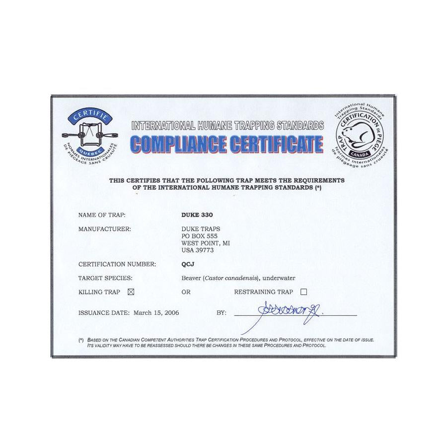 Duke Body Grip Traps such as the size #330 is widely accepted and used by State and Federal Wildlife Agencies and is looked at as one of the most effective humane traps for beaver population control.